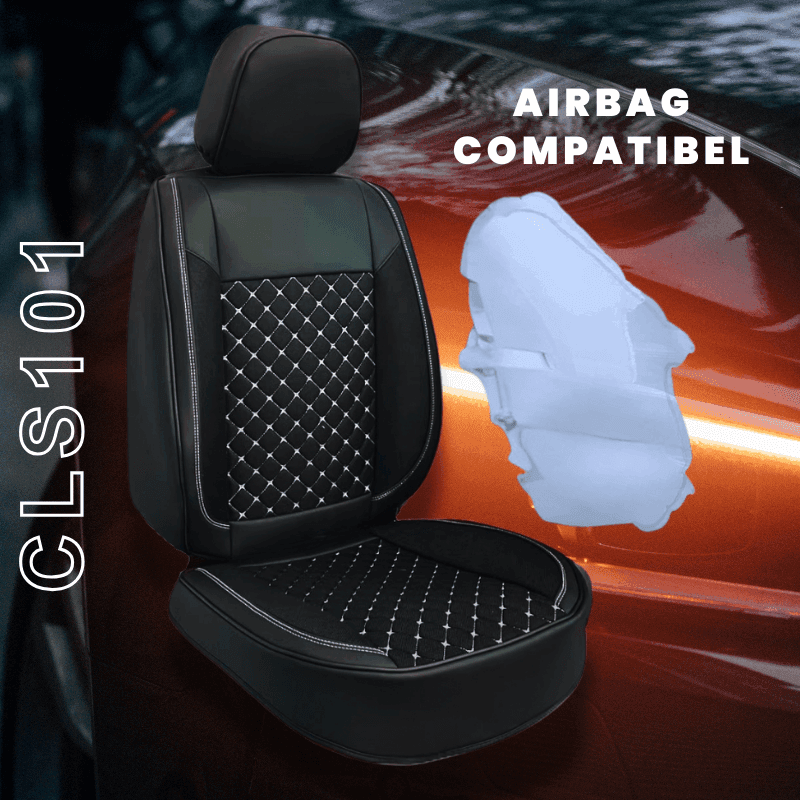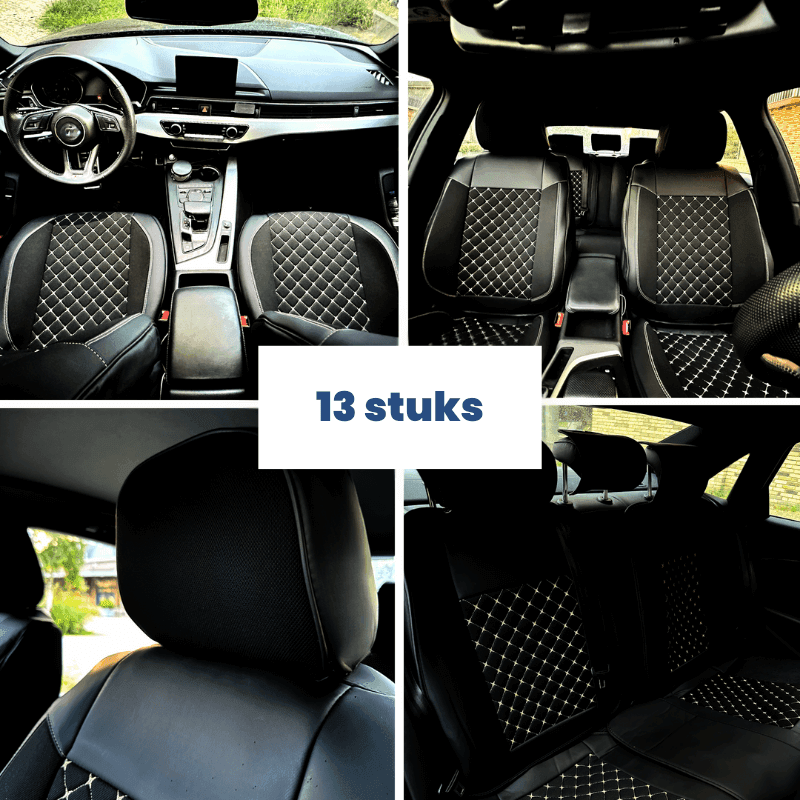 Luxe kunstlederen autostoelhoezen, voor voor- en achterstoelen. Compatibel met zij-airbags en stoelverwarming. Eenvoudige montage!