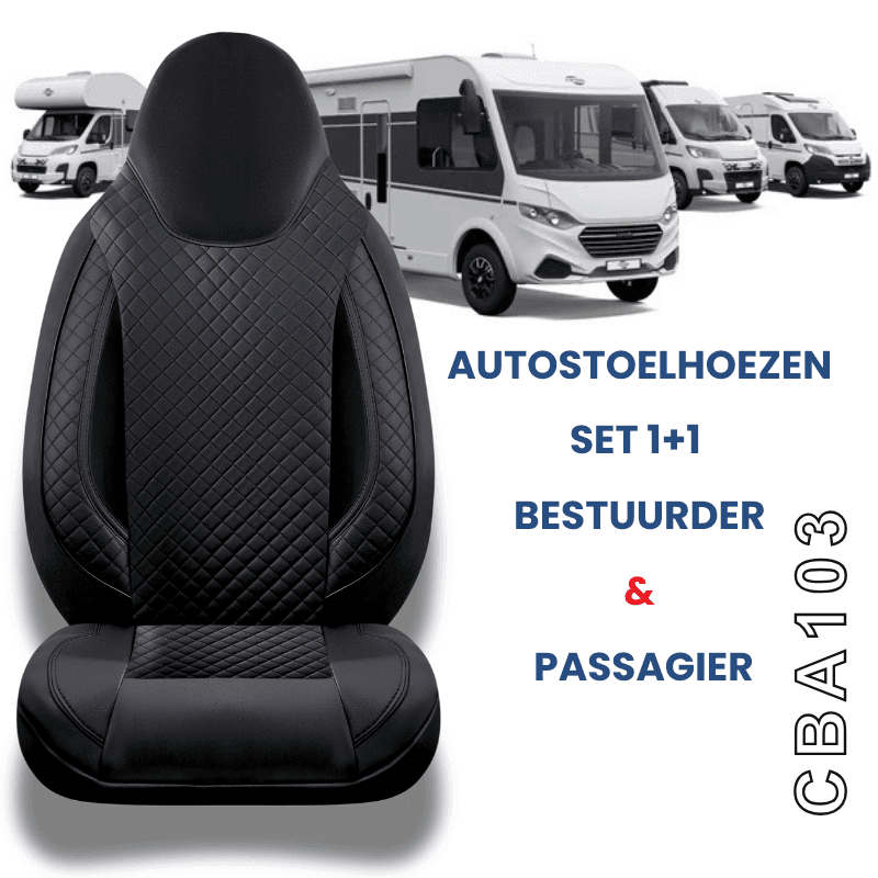 De pasvorm autostoelhoezen van model CBA zijn speciaal ontworpen voor bestelbussen, caravans en campers. Ze bieden een perfecte pasvorm voor zowel de bestuurders- als passagiersstoel en zijn compatibel met actieve hoofdsteunen (niet-afneembaar).